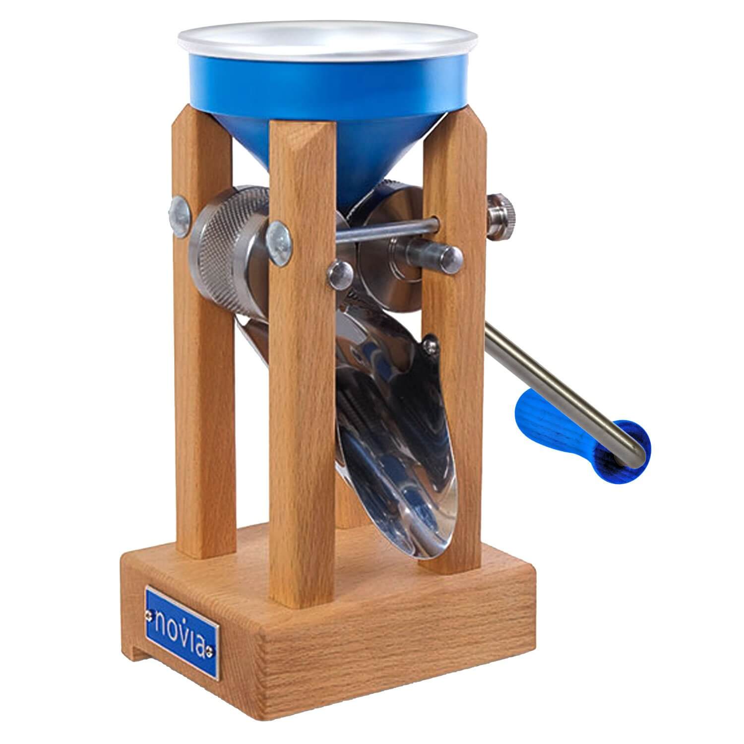 Die KORN-QUETSCHE besteht aus hochwertigen Materialien. Alle Holzteile sind aus massiver Buche gefertigt. Für Kurbel, Schütte und Walzen wird nickelfreier Edelstahl verwendet.