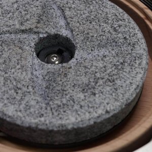 Im Trichter ist der Mahlstein auf Gummiringen ganz leicht elastisch gelagert, um harte Stöße auf den Mahlstein abzufedern, die den Mahlstein beschädigen könnten. Zur Reinigung der Mahlsteine und Mahlkammer kann der Trichter ohne Werkzeug durch mehrfaches Drehen in Richtung grob einfach abgenommen werden.