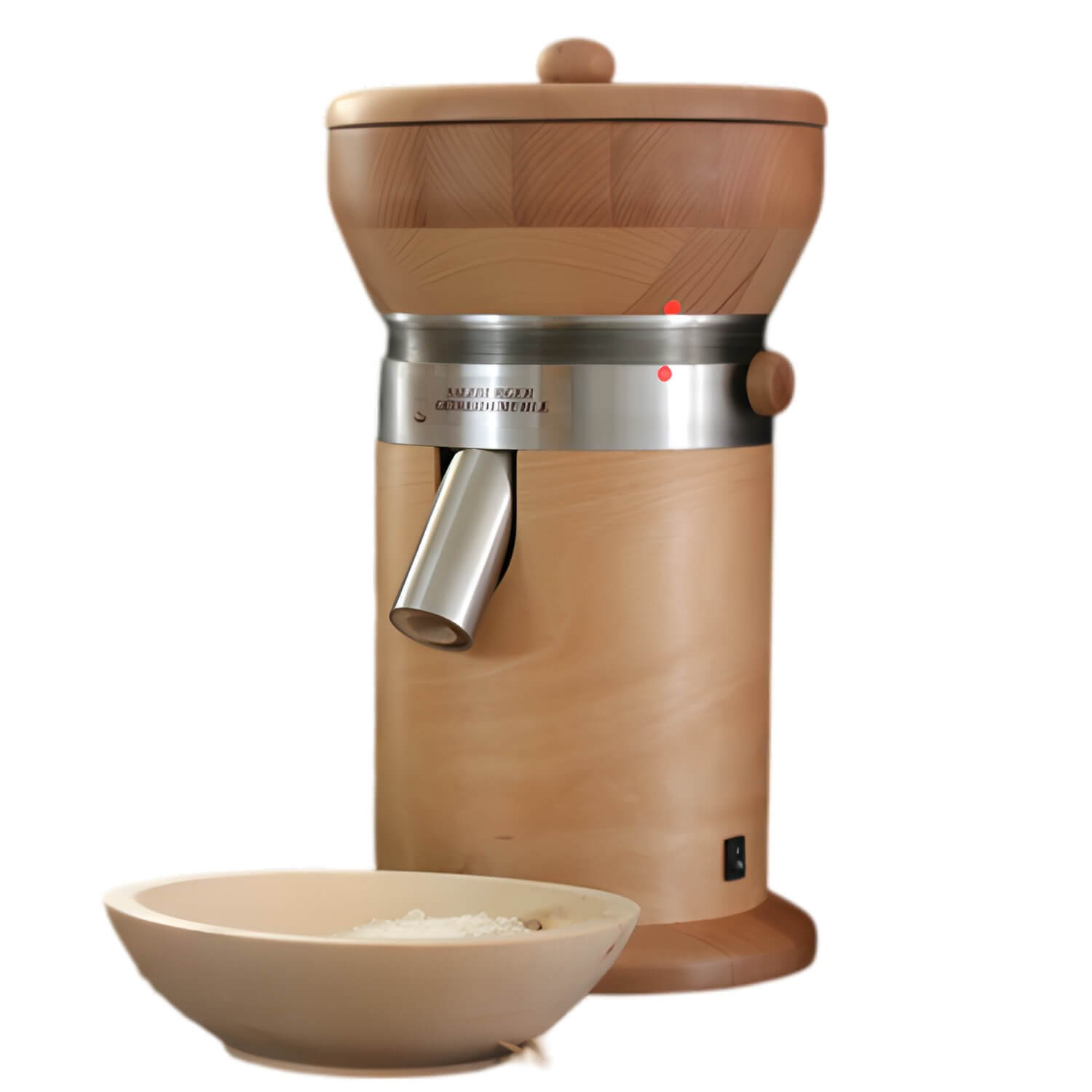 Auch bei der MT18 muß man nicht extra erwähnen, daß nahezu alle Bestandteile der Mühle, soweit technisch möglich, aus natürlichen Materialien bestehen. Die Mahlsteine sind bei allen Salzburger Mühlen aus reinem Granit gefertigt. Die Mahlkammer ist aus unbehandelten Buchenholz gefertigt. Das Gehäuse aus Buche (Formholz beim Korpus, Massivholz bei Sockel und Trichter) ist außen mit Bienenwachsöl behandelt, das der MT18 ihren seidenen Glanz verleiht und sie widerstandsfähiger gegen Verschmutzung macht.