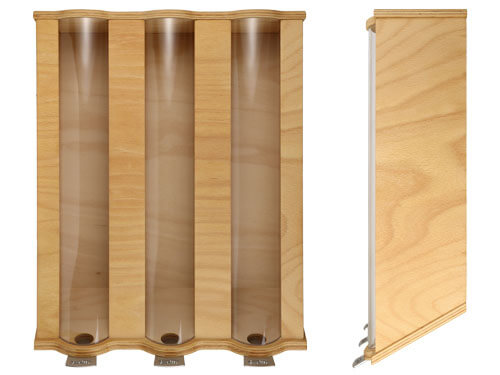 Der KoMo Getreidespeicher ist auch funktionell mit dem Körnerauslass unten, weshalb er gerne auch als Getreidesilo bezeichnet wird. Es ist nicht nur praktisch, sondern auch zweckmäßig, dass man jederzeit neues Getreide nachfüllen kann, auch wenn der Behälter noch nicht ganz leer ist. So können sich keine Altbestände unten ansammeln. Der Auslass unten hat auch den Vorteil, daß die Körner bei jeder Entnahme bewegt werden. Denn Schädlinge wie Motten und Getreidekäfer mögen keine Bewegung. Wenn sich doch mal Getreidekäfer im Getreide befinden, was nicht selten vorkommt, wenn man Getreide direkt vom Biobauern bezieht, sieht man sie gleich durch die Plexiglasscheibe und kann einschreiten.