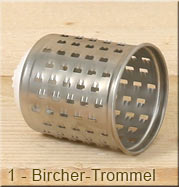 Frisch gerieben und geraspelt mit der Birchertrommel / Trommel Nr. 1